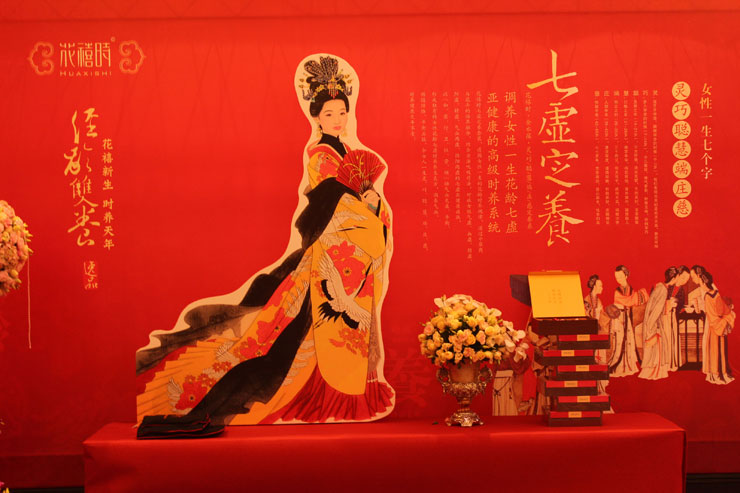 2014年5月15日,夏令赢·第十六届中华国医养生文化论坛在天府成都盛大开幕,会场布置古雅妆丽,成千上百的玫瑰花装饰而成的五周年花墙艳红夺人,花海绽放的气息如同女性独有的魅力一般无可抵挡。论坛经养三品牌花期、花禧时、因时定养产品展示各有特色。花期产品展示,一个成熟女性自信的向众人微笑,丝毫不逊与达芬奇笔下的蒙娜丽莎的微笑,展现了花期产品的神秘之处;花禧时产品展示,宫廷风的民族气息,宫廷女人展现了中国传统女性的温雅纯洁之美,花禧时向世人传播中国女性特有的文雅蕴含;因时定养产品展示,一个优雅的女性侧躺着,是这么的休闲得意,美丽风韵的姿貌,这是女人最美丽之姿。